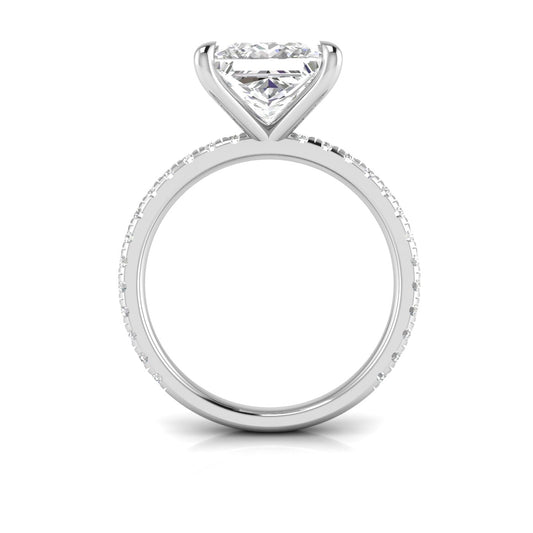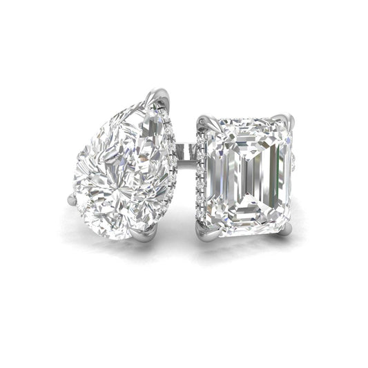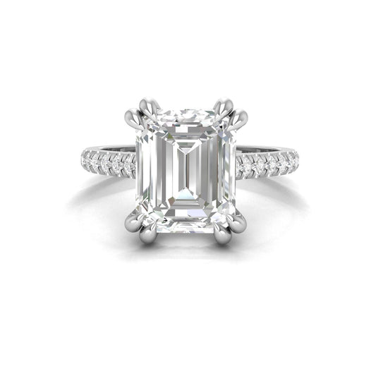 EMERALD DOUBLE PRONGS WITH PAVE RING